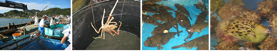 活イセエビ・活車エビ・活アワビ・活ナマコ・活カワハギ・活サザエ活フグ等